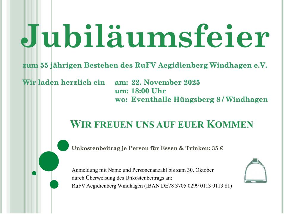Gemeinsame Fahrten zu großen Turnieren wie dem CHIO in Aachen, Grillfeste und gemeinsame Feiern runden das gesellschaftliche Programm ab.
